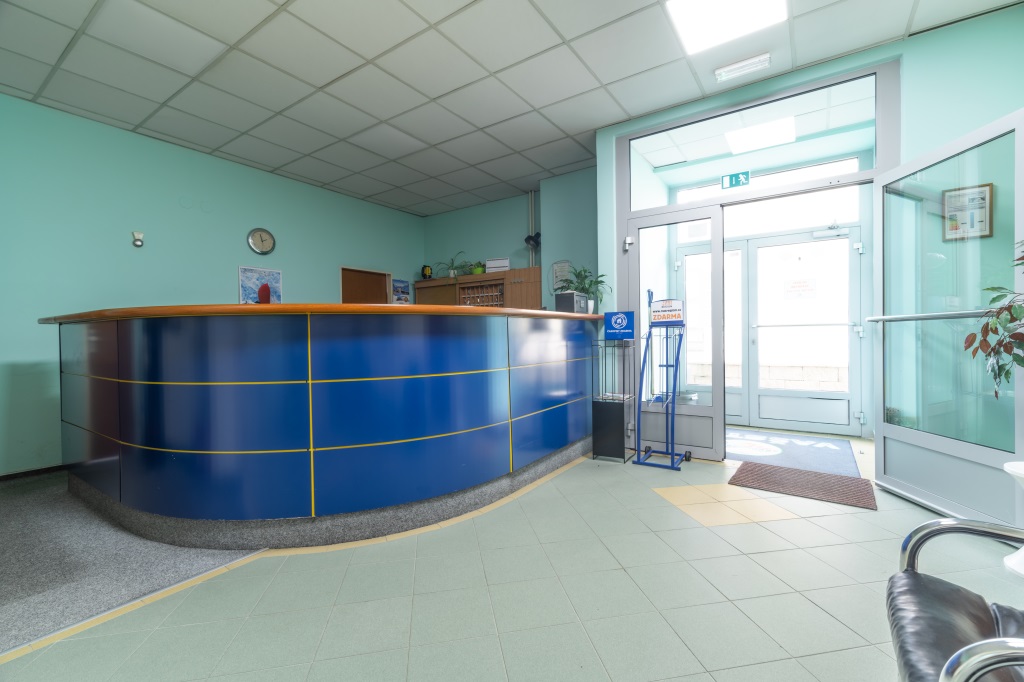 V cihlové budově je k dispozici při vstupu recepce s celodenním provozem - hlídací agentůry.